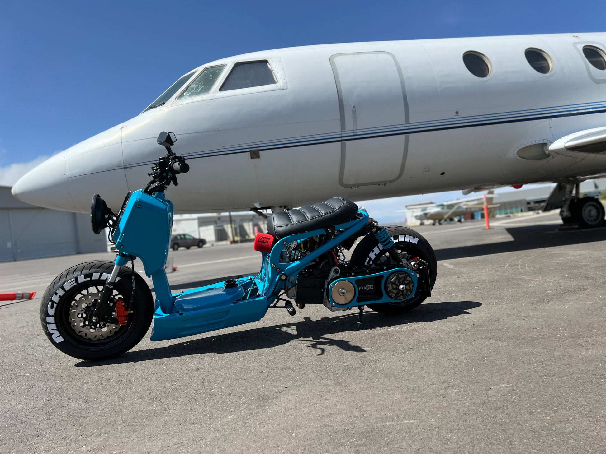 If you are looking to widen and stretch your GY6 Honda Ruckus, this is the kit! It comes with three options of stretch lengths 8", 10", and 12.5". Very well built, steel construction. This kit will fit an 8" wide rear wheel only! The blue ruckus in the picture is with the shortest stretch (8 inch)