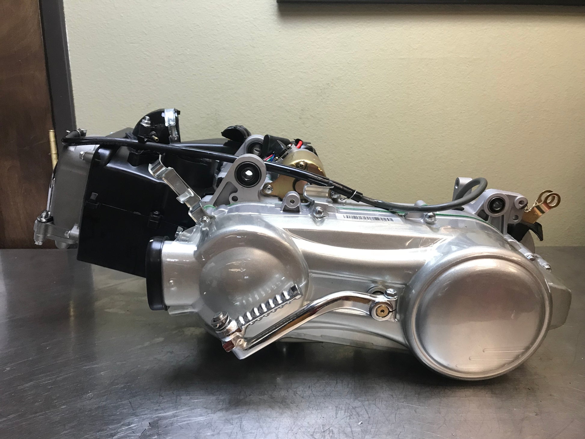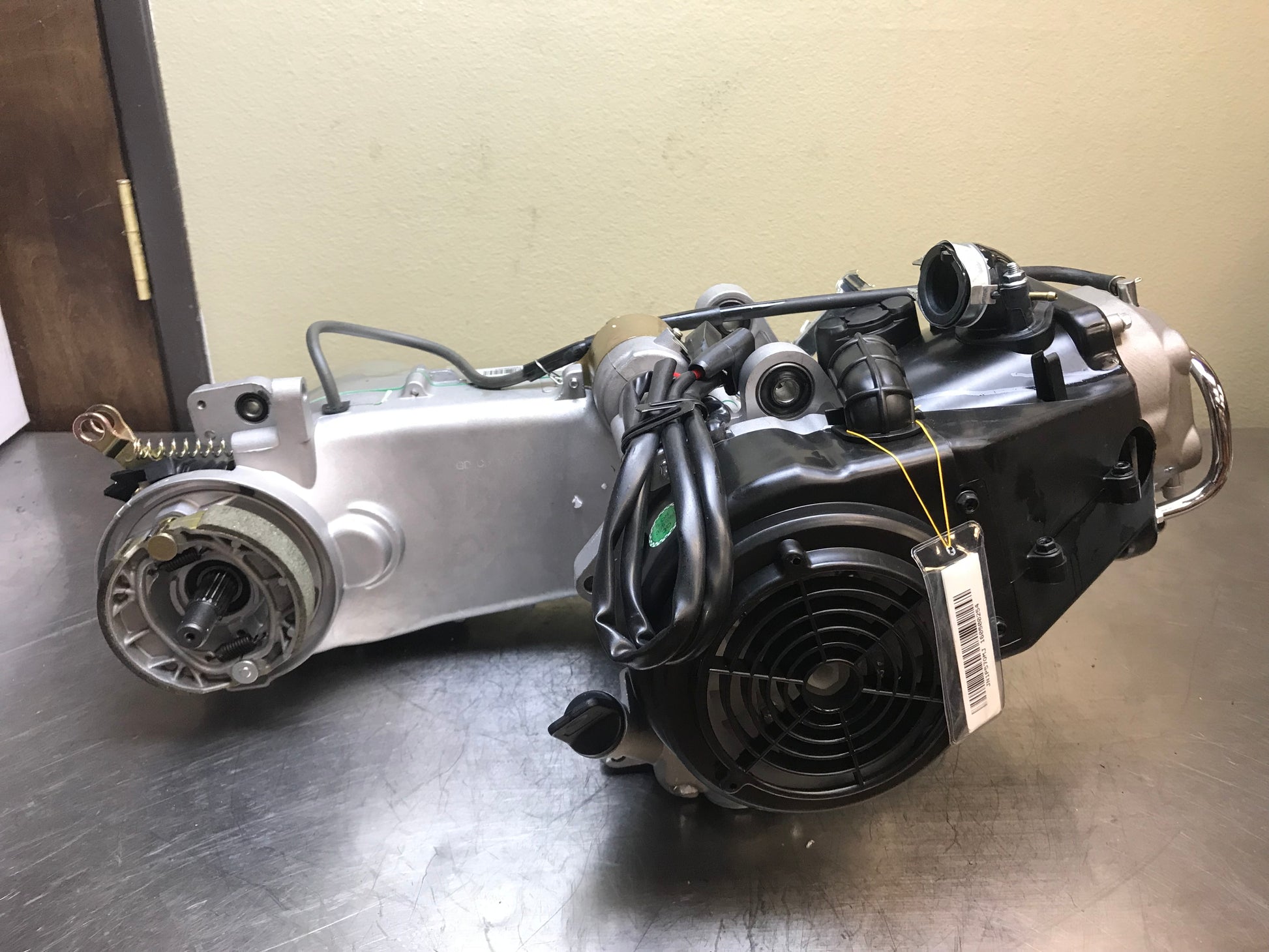 Here we have a GY6 150cc short case engine. This is a direct replacement engine for 150cc GY6 QMJ157 scooters with 10 inch wheels. Any larger, and you will need a long case GY6. This is the Chinese made A motor, capable of upgrading to a 190cc. This motor ships dry, but comes with gear and engine oil.