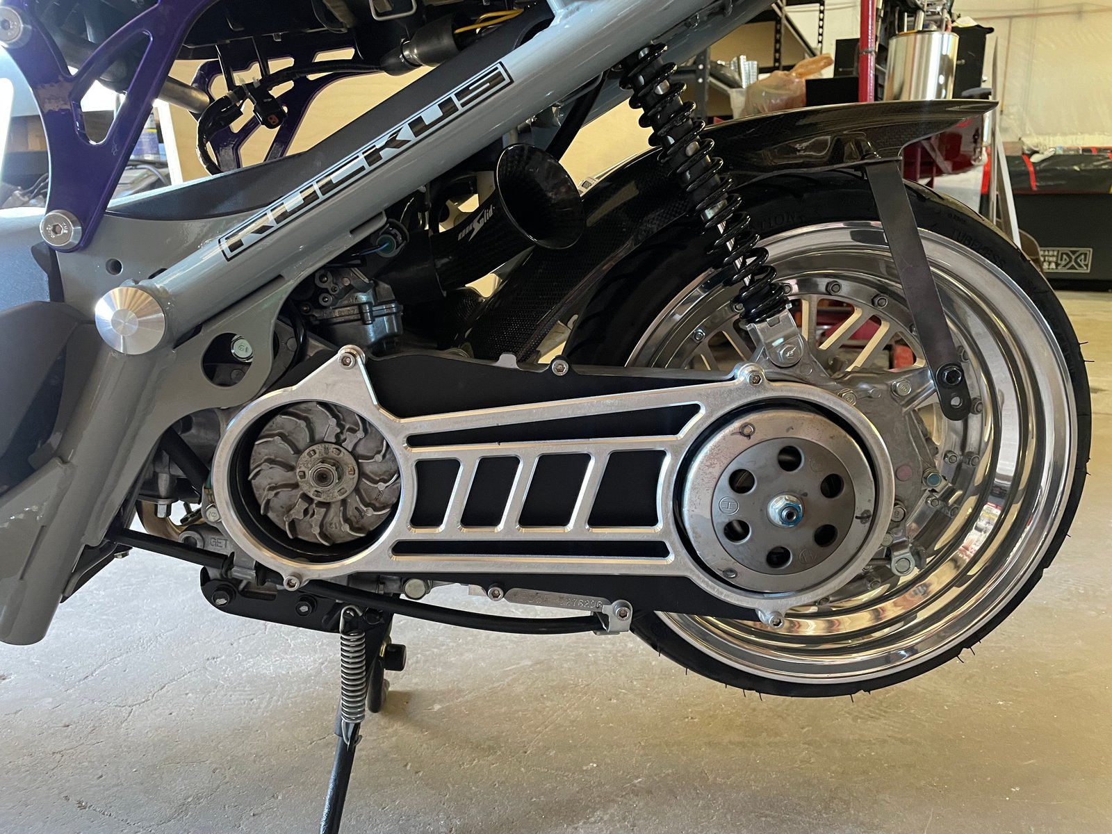 | This one is for all you GET riders out there! Check out this sweet billet CNC piece, machined here in Denver, CO. Really gives your CVT some style. Includes all required hardware to install. Comes in raw or black.